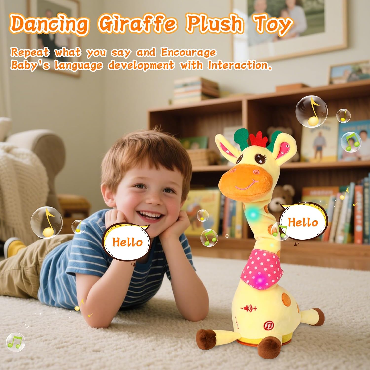 Transform your child's playtime with our Dancing Giraffe Toy. This interactive plush sings, dances, and repeats what your child says, turning dull moments into cheerful, laughter-filled experiences that spark imagination and creativity.